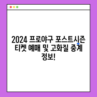 2024 프로야구 포스트시즌 티켓 예매 및 고화질 중계 정보!