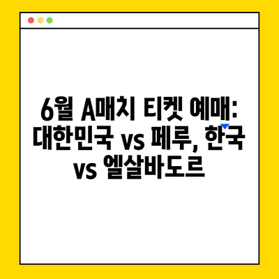 6월 A매치 티켓 예매: 대한민국 vs 페루, 한국 vs 엘살바도르