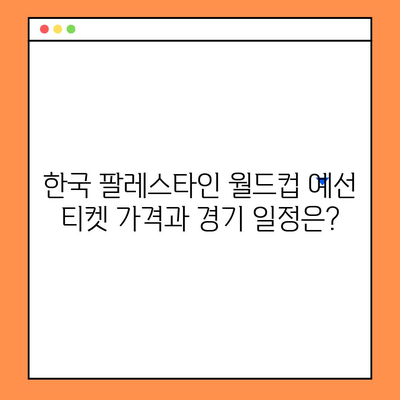 한국 팔레스타인 월드컵 예선 티켓 가격과 경기 일정은?